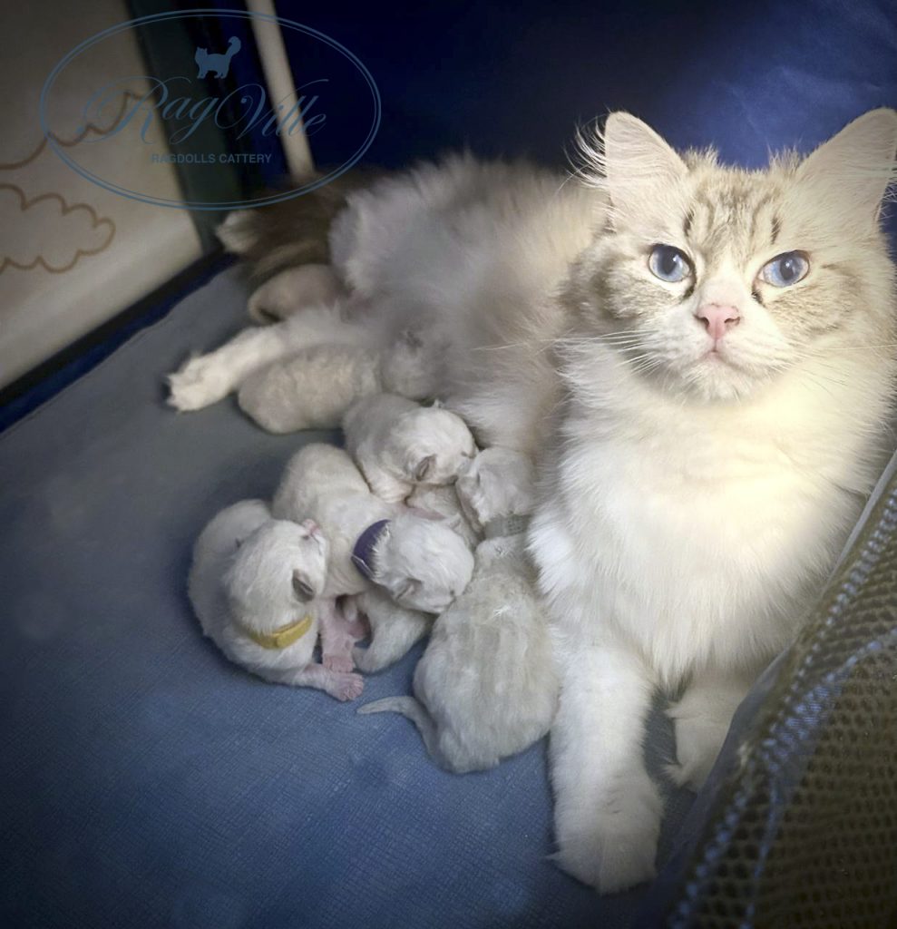 - к марте ждем помет от Ch. Fixy RagVille & Ch. Upic Brise Krasa Shagola — Для Фикси это первый помет, она совсем молодая кошечка, в октября 2025 только получила титул чемпиона. Повязали с котиком окраса seal bicolor знакомой заводчицы.